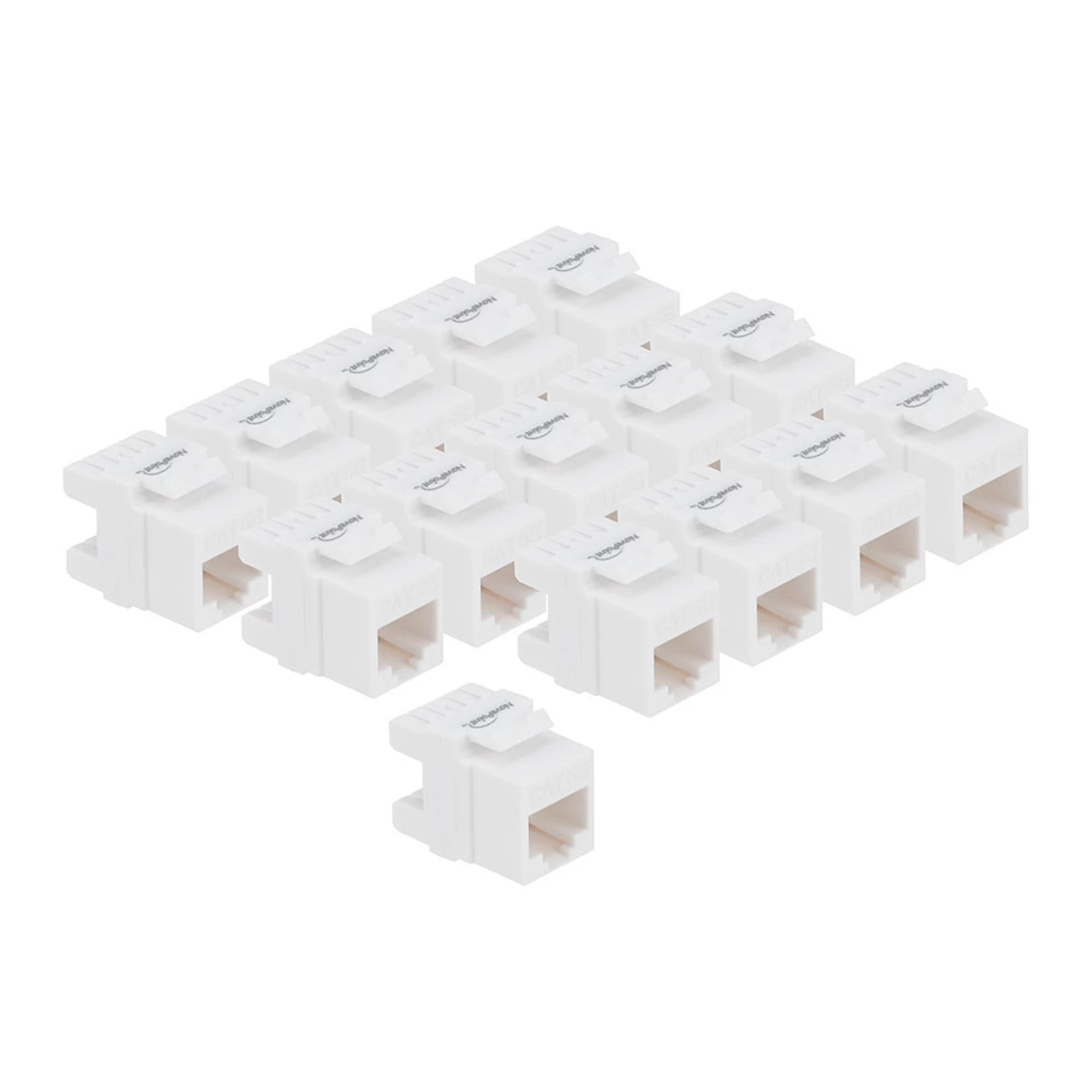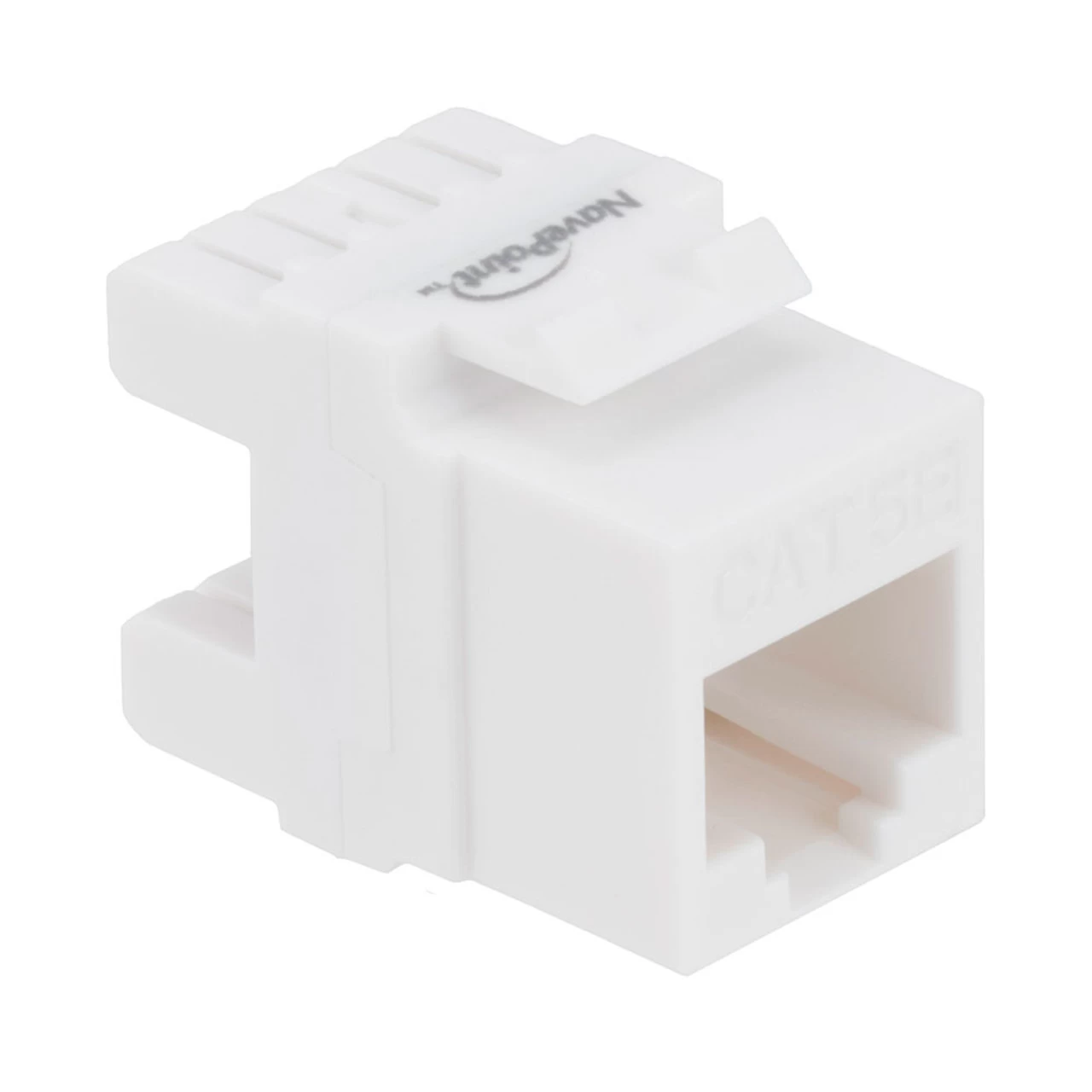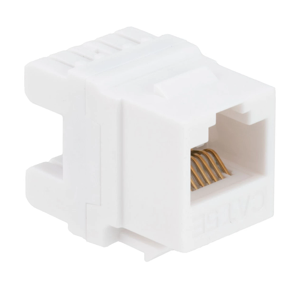 - CAT5E RJ45 modular keystone jack for patch panels, wall plates, or surface mount boxes with standard keystone ports