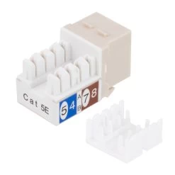 - CAT5E RJ45 modular keystone jack for patch panels, wall plates, or surface mount boxes with standard keystone ports