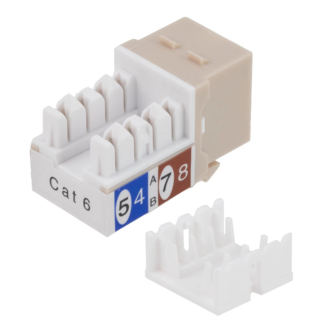 The NavePoint CAT6 keystone jack is made from impact-resistant and fire-retardant high-temperature Thermoplastic and comes with Gold-plated contacts, dual IDC covers, and a Snap-In retaining clip for a secure connection. This keystone jack has a CAT6 female RJ45 jack on the front connector to 110 punch-down on the back connector. The keystone jack is light almond in color and is both versatile and cost-effective.