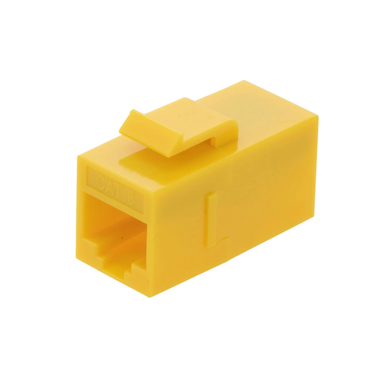 This Category 6 coupler has an easy snap-in retaining clip to ensure a secure and corrosion-free connection. The snap-in inline keystone coupler offers compatibility for use in wall plates, rack panels, and surface mount boxes. This yellow CAT6 inline coupler allows connection of two cables for extending the overall length of the cable.