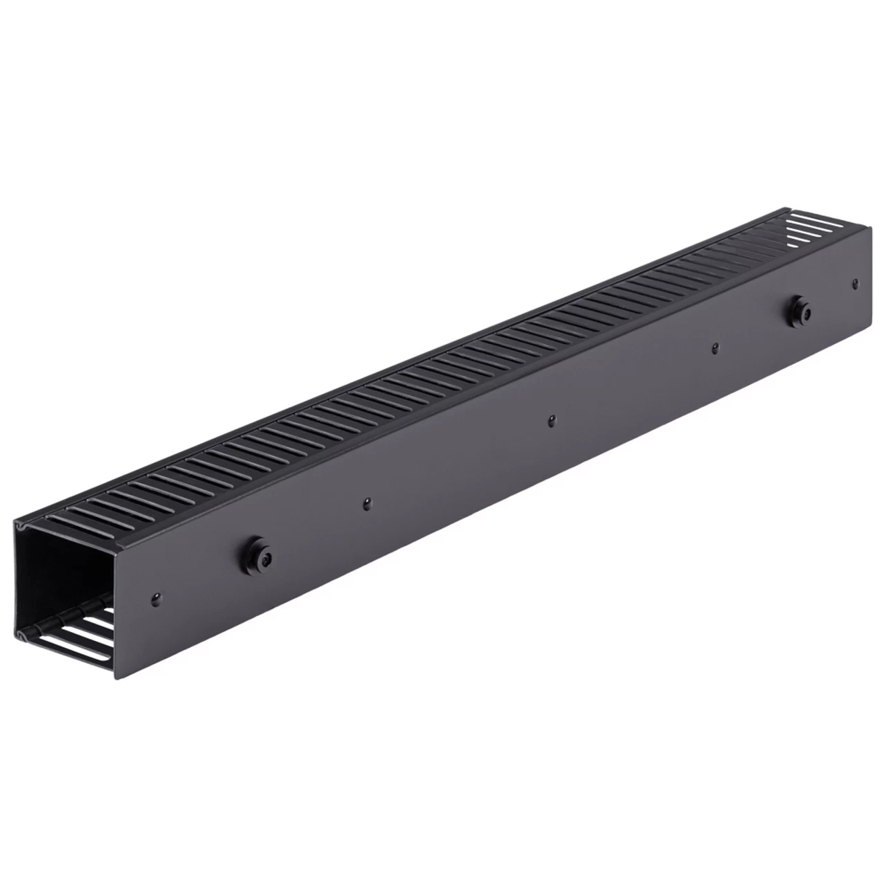 The NavePoint cable management raceway duct panel is designed to organize and support cables from any patch panels and other rack and cabinet mount products. and cabinets and manages everything from small to large bundles of cables and patch cord. The cover and low profile add to the clean, finished appearance of your install. Use this raceway duct cable management panel to get all the benefits of streamlined cable organization: make your install more accessible, reduce cable tension, and improve passive airflow.Constructed of durable Plastic, this cable management raceway delivers durability and functinality.Comes fully assembled; rotating duct cover adds to ease of installation. All mounting hardware included.These Cable Management Raceways are compliant with CE, EIA/ECA 310-EDimensions: 34.02″L x 3.6″W x 3.68″HSince 2008, NavePoint has offered high-quality networking equipment at value prices, supported by excellent, responsive, personal service and free, fast shipping.
