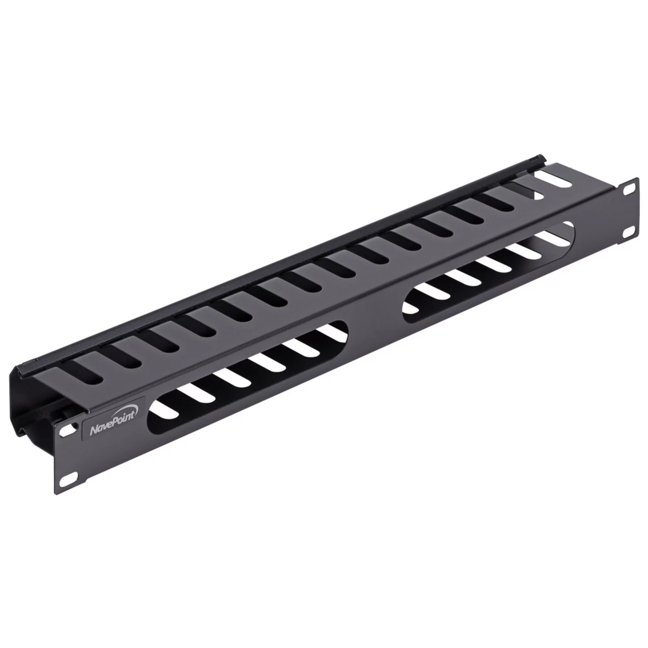 The NavePoint cable management raceway duct panel is designed to organize and support cables from any patch panels and other rack and cabinet mount products. It mounts on standard 19″ racks and cabinets and manages everything from small to large bundles of cables and patch cord. The cover and low profile add to the clean, finished appearance of your install. Use this raceway duct cable management panel to get all the benefits of streamlined cable organization: make your install more accessible, reduce cable tension, and improve passive airflow.Constructed of durable Cold Rolled Steel, this cable management raceway delivers durability and functinality.Comes fully assembled; rotating duct cover adds to ease of installation. All mounting hardware included.These Cable Management Raceways are compliant with CE, EIA/ECA 310-EDimensions: 19″L x 2.76″W x 1.75″HSince 2008, NavePoint has offered high-quality networking equipment at value prices, supported by excellent, responsive, personal service and free, fast shipping.