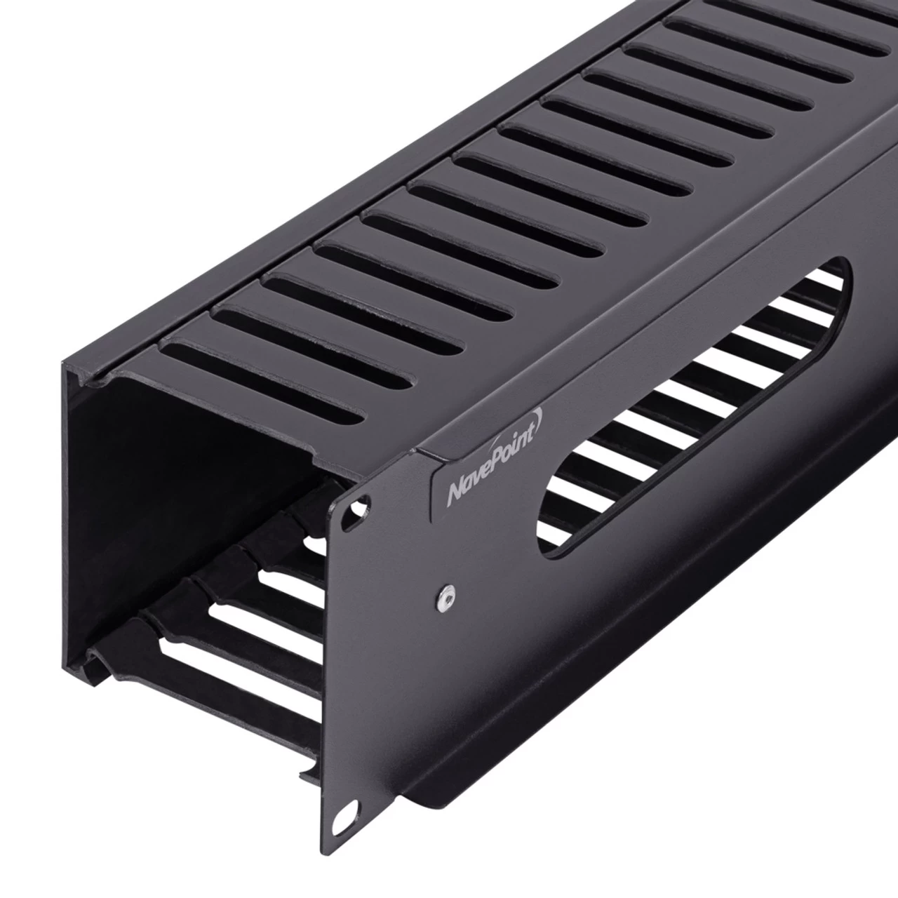 The NavePoint cable management raceway duct panel is designed to organize and support cables from any patch panels and other rack and cabinet mount products. It mounts on standard 19″ racks and cabinets and manages everything from small to large bundles of cables and patch cord. The cover and low profile add to the clean, finished appearance of your install. Use this raceway duct cable management panel to get all the benefits of streamlined cable organization: make your install more accessible, reduce cable tension, and improve passive airflow.Constructed of durable Plastic, this cable management raceway delivers durability and functinality.Comes fully assembled; rotating duct cover adds to ease of installation. All mounting hardware included.These Cable Management Raceways are compliant with CE, EIA/ECA 310-EDimensions: 19″L x 3.52″W x 3.5″HSince 2008, NavePoint has offered high-quality networking equipment at value prices, supported by excellent, responsive, personal service and free, fast shipping.