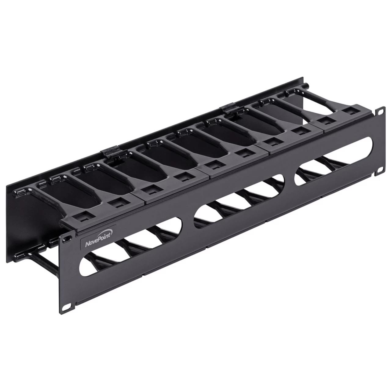 The NavePoint cable management raceway duct panel is designed to organize and support cables from any patch panels and other rack and cabinet mount products. It mounts on standard 19″ racks and cabinets and manages everything from small to large bundles of cables and patch cord. The cover and low profile add to the clean, finished appearance of your install. Use this raceway duct cable management panel to get all the benefits of streamlined cable organization: make your install more accessible, reduce cable tension, and improve passive airflow.Constructed of durable Plastic, this cable management raceway delivers durability and functinality.Comes fully assembled; rotating duct cover adds to ease of installation. All mounting hardware included.These Cable Management Raceways are compliant with CE, EIA/ECA 310-EDimensions: 19″L x 4.41″W x 3.5″HSince 2008, NavePoint has offered high-quality networking equipment at value prices, supported by excellent, responsive, personal service and free, fast shipping.
