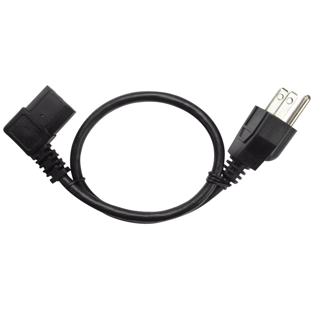 This NavePoint 18 Gauge Heavy Duty universal 3-pin right angle power cord is a standard replacement cord for most computers, HDTV, LED-lit monitors, printers, scanners projectors and other devices. High quality construction and design make this a reliable cable for your important computing needs. Be sure to check the voltage and amp rating of your equipment to ensure compatibility prior to use.UNIVERSAL: Standard 3-prong male (NEMA 5-15P) to female (IEC320C13) power cord can be used with most PCs, monitors, printers and other equipment requiring a 3-pin power cord to connect to a standard 120V outlet receptacle.CONVENIENT: This replacement power cord is available in a variety of lengths and pack sizes. Find the right size for your application to ensure a neat and tidy installation. HEAVY DUTY: This 18 AWG power cable is rated for 10 amps to support most common applications. This cable features a standard NEMA 5-15-P grounded power plug and a 3-pin shrouded female IEC-320-C13 connector; SVT 10A/300V rated.Please note that this cable is not rated or designed to be used as an extension cord.BUY WITH CONFIDENCE: Rest easy knowing that this product is UL listed and is backed by our standard 30 day money back guarantee should you have any difficulty with it.