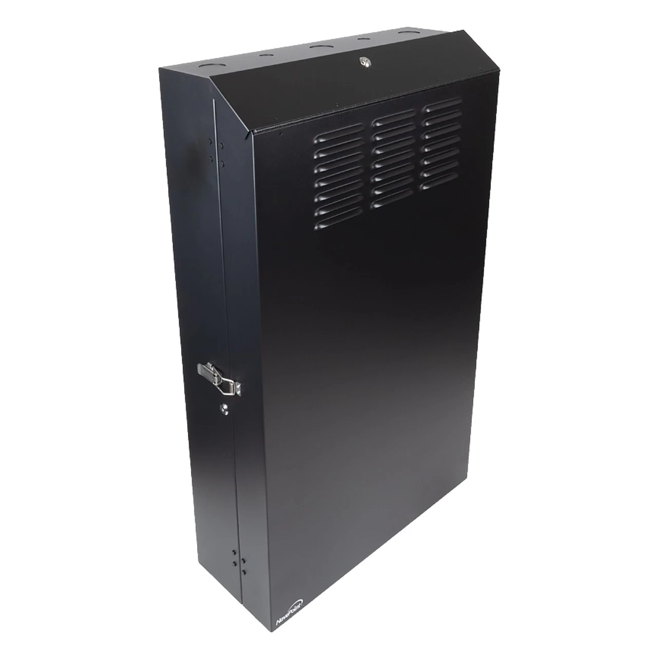 The NavePoint Switch Depth Vertical Wall-mounted Network Enclosures secure and neatly organize your EIA 19″ standard rack-mounted servers and networking equipment in accessible but space-challenged locations like a back office, closet, or retail location. By mounting vertically, this low-profile enclosure houses deeper equipment while extending only 9.75 from the wall. The NavePoint 5U enclosure accommodates equipment like network switches and patch panels up to 36″ depth.