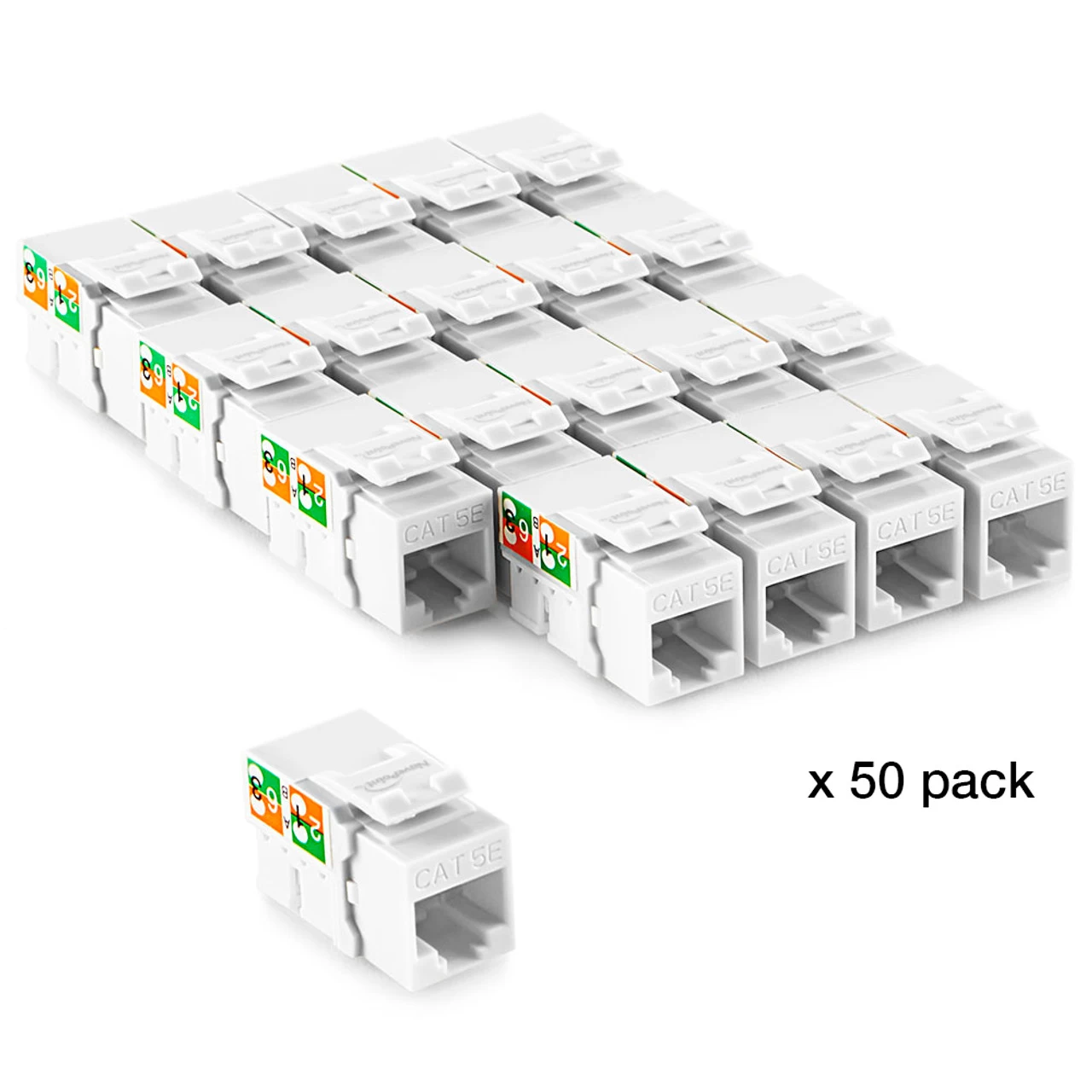 NavePoint 90 Degree Cat5e Keystone Jack White 50-Pack