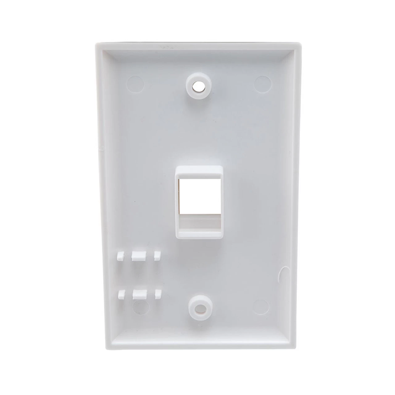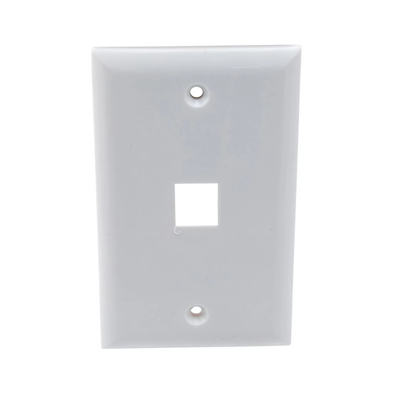 This 1-port wall plate has a low-profile design that protects and hides your network connections to ensure a professional-looking installation. This face plate admits all snap-in keystone jacks and couplers. The contemporary flush design wall plate provides a clean look and is sold in a pack of 10. This face plate is available with 2 screws for mounting it on a wall.