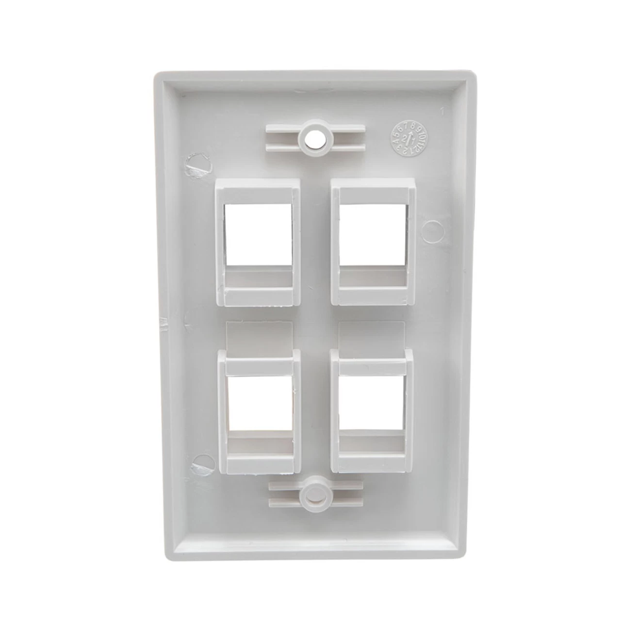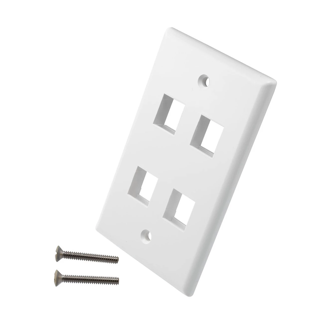 This 4-port wall plate has a low-profile design that protects and hides your network connections to ensure a professional-looking installation. This face plate admits all snap-in keystone jacks and couplers. The contemporary flush design wall plate provides a clean look and is sold in a pack of 10. This face plate is available with 2 screws for mounting it on a wall.